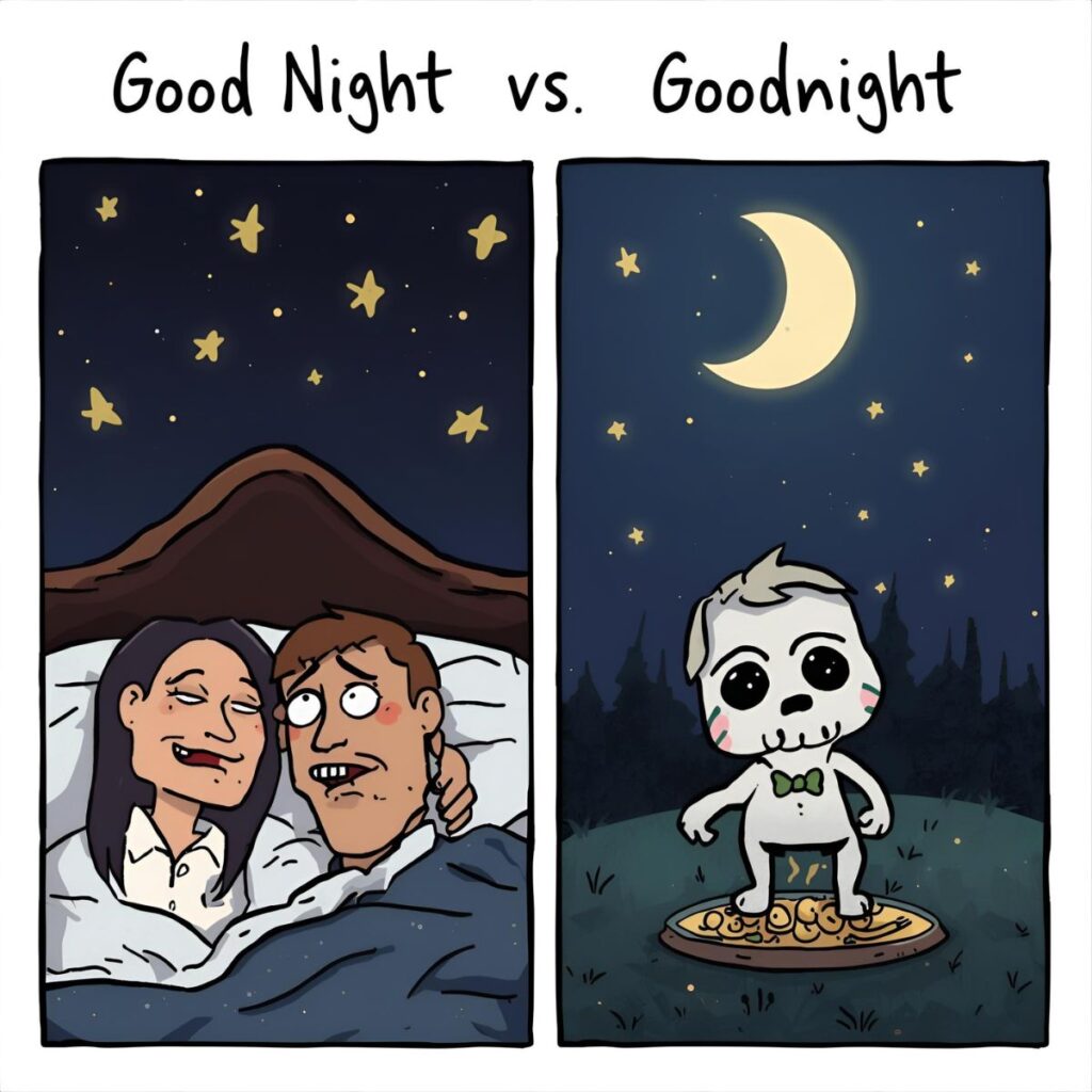 👉 Rule of thumb: Use “good night” in formal writing, and “goodnight” in casual texts or greetings.